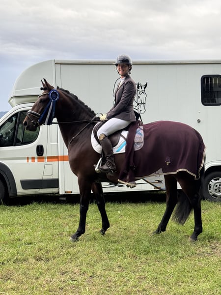 Rosa da Hermida est une jument lusitanienne sortie tout droit d'un conte de fées. Magnifique, pétillante - ronde comme un ballon, elle offre déjà à son cavalier, à seulement 4 ans, une sensation d'équitation fantastique. Grâce à son célèbre grand-père « Rubi », elle est certainement dotée de trois excellentes allures de base, faisant battre le cœur de chaque cavalier. Elle est très agréable à monter et légère dans la main. Elle a été délicatement débourrée et est actuellement en cours de formation polyvalente avec beaucoup de sensibilité. Sur le plan du caractère, cette jument est inégalable et est un véritable trésor à manipuler. Il n'y a aucune difficulté dans le quotidien - promenade au pré avec différents compagnons, douche, maréchal-ferrant, transport en van, attache, sorties en extérieur - pour Rosa, tout cela est une évidence. Un cheval de rêve qui est proposé à la vente uniquement en raison de sa petite taille. - Sans Piro.