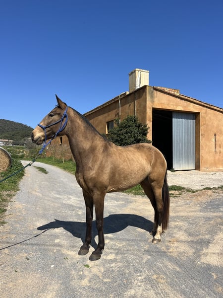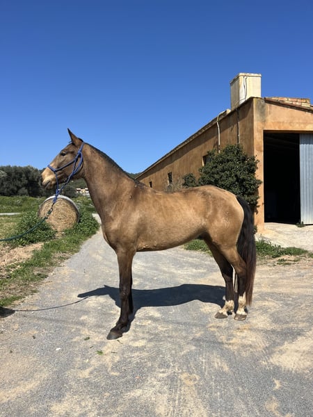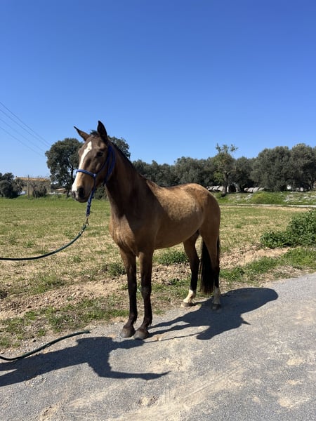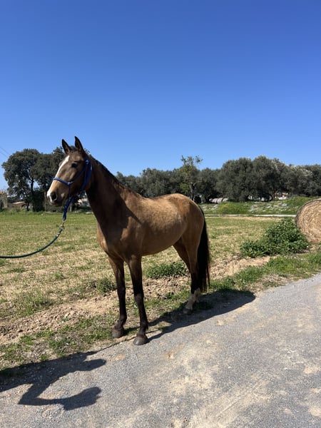 Potra de 5 años lusitana PSL baya con muy buenos movimientos y buen fisico sabe dar cuerda y se le puso el cinchuelo pero no esta montada ideal para criar lusitanos cruzados o cde o para acabarla de desbravar y usarla pasear para doma clasica o equitacion de trabajo , vaquera o otra disciplina