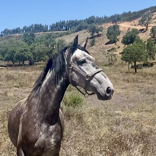 Orelia est une jument de reproduction approuvée par l'APSL, avec un ensemble de gènes unique, une combinaison de Riopele SC (Reprodutor Merito et Reprodutor Recomendado pour le Dressage) et de Violino SS (Reprodutor Recomendado), qui lui confère à la fois beauté et mouvements expressifs. Elle possède des gènes importants et bien connus de Veiga et Andrade. Elle est enceinte de notre incroyable étalon de reproduction Douro MMV, mesurant 1,71 m et ayant des gènes de combat de taureau pur Veiga-Vinhas. Orelia est une très bonne mère et une jument sensible à haute énergie. Elle manifeste ce niveau d'énergie dans ses mouvements expressifs et flexibles. Ses mouvements naturels peuvent également être observés chez sa progéniture. Elle est toujours sur ses gardes en groupe, afin d'être consciente de son environnement.