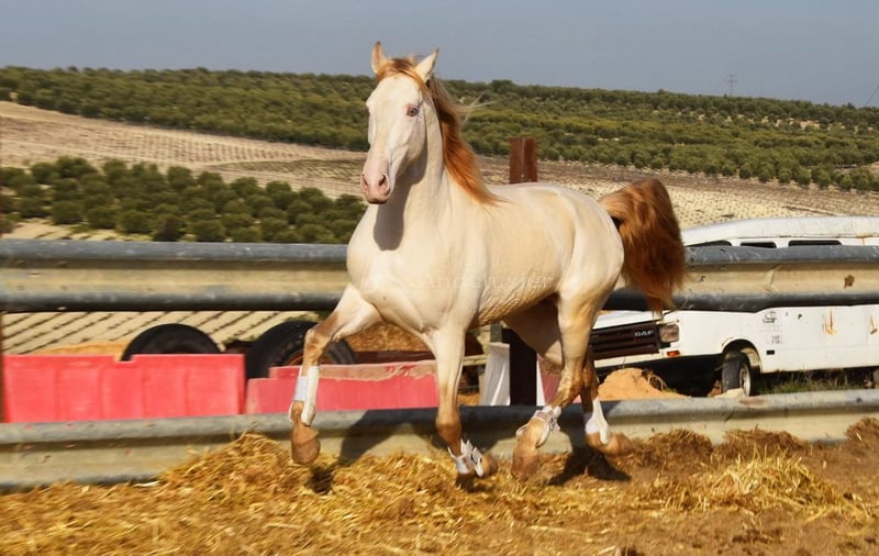 Miły ogier Lusitano perlino, idealny koń rodzinny, w Szwajcarii