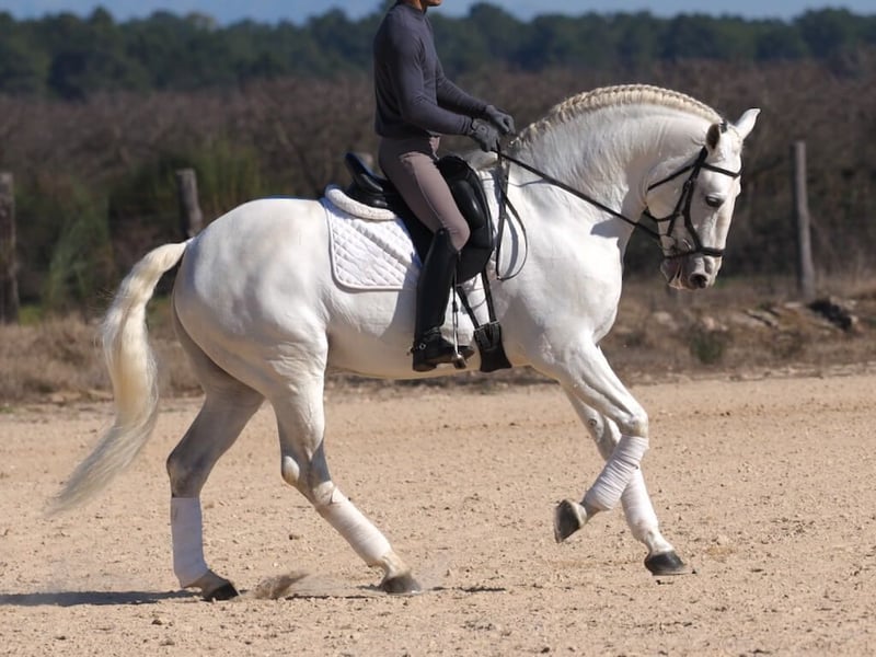 Dieses Lusitano-Pferd, geboren im Jahr 2015 und mit einer Größe von 165 cm, ist ein außergewöhnliches Pferd auf Grand-Prix-Niveau. Sein Trab ist einfach spektakulär und zeichnet sich durch Ausdruckskraft und Kadenz aus, was ihm eine beeindruckende Präsenz in der Arena verleiht. Zudem ist sein Galopp fließend, ausbalanciert und mit großer Raumgriff, sodass er harmonische Übergänge zwischen den Gangarten ermöglicht. Dieses Pferd wurde zudem meisterhaft in den fortgeschrittensten Bewegungen der klassischen Dressur ausgebildet, einschließlich Pirouetten, verlängertem Trab und den anspruchsvollen fliegenden Galoppwechseln von Sprung zu Sprung. Sein Piaffe und Passage werden mit Präzision und Eleganz ausgeführt, was seine außergewöhnliche Konzentrationsfähigkeit und herausragende Bewegungsqualität widerspiegelt. Seine Harmonie mit dem Reiter ist makellos, wodurch er sich perfekt für den Spitzensport eignet.