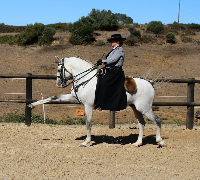 Mein Belmonte ist zwar nicht mehr jung ,aber superfit, gesund ,stark und absolut zuverlaessig . Es ist eine sehr seltene ,wenn nicht einmalige Gelegenheit, ein "Lebensversicherungspferd" zu erwerben.Da er mir sehr am herzen liegt, behalte ich mir vor, den neuen Besitzer gruendlich auszusuchen. Belmonte hat gefuehlt Hunderte Dressurpruefungen bis Avancado ( schwere M) gewonnen, kann aber auch Serienwechsel bis 2 er , Pirouetten, Piaffe, Passage, span Schritt,und natuerlich alle Seitengaenge in allen Gangarten. Er ist seit 10 Jahren bei mir und war keinen Tag krank oder lhm.Ein super gesundes starkes Pferd, der viel zu schade fuer die rente ist.Er hat nebenher hier allen Reitern , besonders den aengstlicheren, das Dressurreiten beigebracht. Sollte es jemand geben,der schon das reiten aufgeben will aus elchen Gruenden auch immer, hier ist die Gelegenheit, noch en paar Jahre sicher weiter zu reiten. Er wird verkauft,da wir aus altersgruenden unser Dressurunterichtsprogramm eingestellt haben und er sonst arbeitslos wird, dafuer ist er viel zu schade und hat zuviel Spass an der Sache