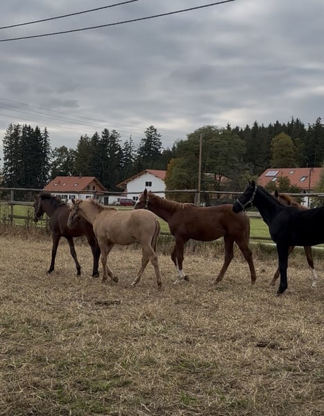 ⚜️Vamos-Asti geb. 31.03.2025⚜️ Vamos ist ein red dun, er trägt das Dun -Gene D/nd1. Er ist im Offenstall aufgewachsen, mit 24 Std. Zugang zur großen Koppel. Er kennt es, auch mit seiner Mama in der Box zu sein. Er kennt das Fohlen-ABC, er wird selbstverständlich regelmäßig entwurmt und mit Mineralien versorgt. Er ist an allem interessiert, ist nervenstark . Vamos hat gute Bewegungen und ist typisch für seine Rasse sehr wendig und in gutem Gleichgewicht. Vamos hat das APSL Papier, ist in Deutschland geboren. Geschätztes Endmaß + - 1,58-1,60 m. Mutter Quā 1,52 m ist ebenfalls eine red dun. Sie hat sehr gute Bewegungen, und ist typisch für die Lusitanos sehr wendig. Quā wurde angeritten, dabei hat sie sich als außergewöhnlich nervenstarke und kooperative gezeigt. Ihren guten Charakter, hat sie beim anreiten ebenfalls gezeigte. Guter Charakter und „klar im Kopf“ist für mich neben Gesundheit, das wichtigste Merkmal was ein Pferd besitzt sollte. Der Papa I-Don Malagueño 1,64 m ist ein Hengst der sich international bewiesen hat. Sein Exterieur und auch seine Leistungsbereitschaft sind außergewöhnlich. Siegreich bis Prix St Georg und durch Sporterfolge voll zugelassen für Hengstbuch 1 Warmblut. Auch er hat einen sehr lieben und guten Charakter und den „will to please“. Vamos steht in einer professionellen Hengstaufzucht. Der Platz könnte gerne übernommen werden. Wir wünschen uns für Vamos einen super Platz, bei Menschen die Pferdeverstand und Erfahrung haben. Für Fragen stehe ich gerne zur Verfügung.