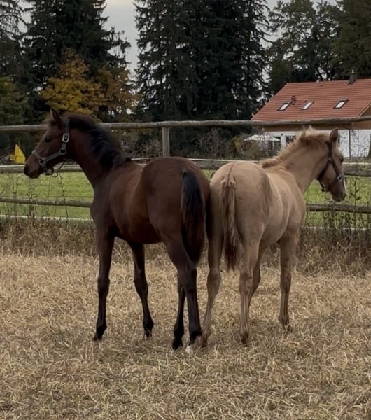 ⚜️Vamos-Asti, born March 31, 2025⚜️ Vamos is a red dun, carrying the dun gene D/nd1. He was raised in a herd environment with 24-hour access to a large pasture. He is familiar with being in a box with his mother. He knows the basics of foal training, is regularly dewormed, and receives mineral supplements. He is curious about everything and has a calm, steady temperament. Vamos has good movement and, typical for his breed, is very agile and well-balanced. He holds APSL registration and was born in Germany. Estimated final height: approximately 15.8–15.9 hands. His mother, Quā, is also a red dun and stands 14.8 hands. She has excellent movement and is very agile, typical for Lusitanos. Quā has been backed and has proven to be exceptionally calm and cooperative. Her good character was evident during her training. For me, good temperament and a clear mind are as important as health in a horse. His sire, I-Don Malagueño, stands 16.1 hands and is an internationally proven stallion. His conformation and performance readiness are outstanding. He has competed successfully up to the Prix St. Georges and is fully approved for Warmblood stallion book 1 through sport achievements. He also has a very kind and good nature and a strong willingness to please. Vamos is currently in professional stallion upbringing. The place could be taken over if desired. We are looking for an excellent home for Vamos with people who have horse experience and understanding. Please feel free to contact me with any questions.