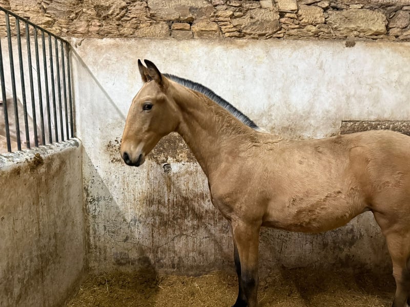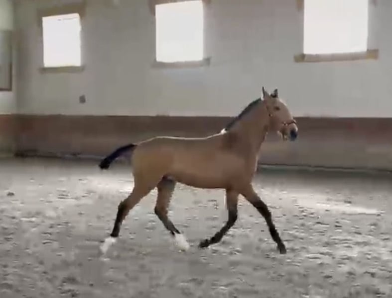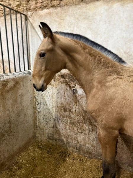 ✨VENTIL DE SENA✨ Buckskin mit RUBI- und HOSTIL-Line & sportlicher Zukunft VENTIL DE SENA Merkmale: - Rasse: Lusitano - Geschlecht: Hengst - Geburtsjahr: 2025 - Farbe: Buckskin - Stockmaß: 1,64m (Endstockmaß geschätzt) ⸻ Ein außergewöhnlich typvolles Lusitano-Hengstfohlen, das durch seine begehrte Buckskin-Farbe, seine starke Abstammung und seinen lieben Charakter überzeugt. Ein Nachwuchspferd mit echter Perspektive – für Sport, Zucht und Liebhaber besonderer Lusitanos. ⸻ 🧬 Hochwertige Abstammung: ✨ Vater: HOSTIL DE SENA • mit 70,5 Punkten gekört • steht für Rittigkeit, Substanz und Leistungsbereitschaft ✨ Mutter: NERUDA DE SENA • mit 71,51 Punkten gekört • abstammend vom berühmten RUBI, einer der prägendsten Lusitano-Hengste im internationalen Dressursport ➡️ Eine genetische Kombination aus Sportlichkeit, Qualität und bewährten Linien. ⸻ 🐎 Bewegung & Qualität: • Sehr schöne, elastische Grundgangarten • Ausdrucksstarker Bewegungsablauf • Gute natürliche Balance ➡️ VENTIL bringt bereits jetzt Power, Elastizität und Präsenz mit – beste Voraussetzungen für eine spätere sportliche Karriere. ⸻ 🧠 Charakter & Entwicklung: • Kennt das Fohlen-1×1 • Lieb, freundlich und menschenbezogen • Klar im Kopf und aufmerksam ➡️ Ein junger Hengst mit ehrlicher, angenehmer Art und sehr guter Einstellung. ⸻ 🌿 Aufzucht: VENTIL wächst artgerecht auf und kann sich in Ruhe entwickeln – eine ideale Grundlage für ein gesundes, leistungsfähiges Sportpferd. ⸻ 🎯 Perspektive: VENTIL DE SENA ist ideal für: • zukünftigen Dressur- oder Working-Equitation-Sport • Zuchtinteressenten aufgrund seiner hochwertigen Linien • Liebhaber besonderer Lusitanos mit Farbe und Qualität ⸻ ⭐ Fazit: VENTIL DE SENA vereint: ✅ Buckskin-Sonderfarbe ✅ RUBI-Blutlinie ✅ gekörte Eltern ✅ sehr gute Bewegungen ✅ lieben, klaren Charakter ➡️ Ein Nachwuchspferd für Menschen, die das Besondere suchen und ein Lusitano-Fohlen mit echter Perspektive aufziehen möchten. ⸻ 📞 Kontakt & Besichtigung VENTIL DE SENA kann nach Vereinbarung besichtigt werden. Ich freue mich auf ernsthafte Anfragen und nehme mir gerne Zeit für ein persönliches Gespräch.