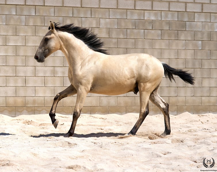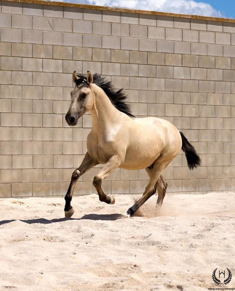 🐴 Uranio ist ein spektakuläres Lusitano-Hengstfohlen in sehr hellem goldenen Buckskin, mit schwarzen Abzeichen und einem weißen Stern auf der Stirn; schwarze Mähne und Schweif mit frosted (bereiftem) Effekt. Geboren am 3. Juli 2024. Aktuelle Größe: 1,55 m am Widerrist. Er besticht durch seine große Statur und seinen barocken, sehr rassetypischen Körperbau. Sehr korrekt gestellt. Schräge Schultern, runde Kruppe und ausgezeichnete Knochenstärke; konvexes (rammnäsiges) Profil, äußerst typisch für die Rasse, mit lebhaften und ausdrucksstarken Ohren und Blick. 💪 Mit einem imposanten Körperbau und harmonischen, fließenden und elastischen Bewegungen vereint Uranio Schönheit, Adel und Funktionalität. Ein ideales Nachwuchspferd sowohl für klassische Dressur als auch für Ausritte, Freizeit und Familiennutzung. 🩺 Gesundheit garantiert: Jede tierärztliche Untersuchung wird akzeptiert. Entwurmt, mit aktueller Dokumentation und EU-Pass. 🔬 Farbgenetik: E/x A/a CRcr – Buckskin. 🚛 Nationaler und internationaler Transport mit spezialisierten Unternehmen möglich. 📲 Kontakt: 🟢 WhatsApp: +34 639 522 420