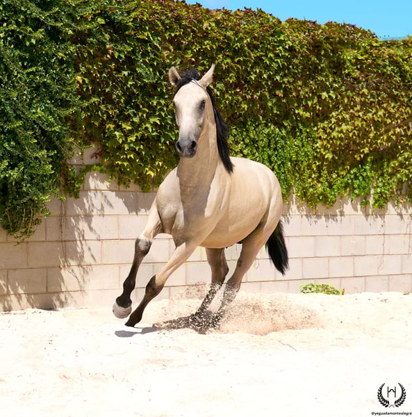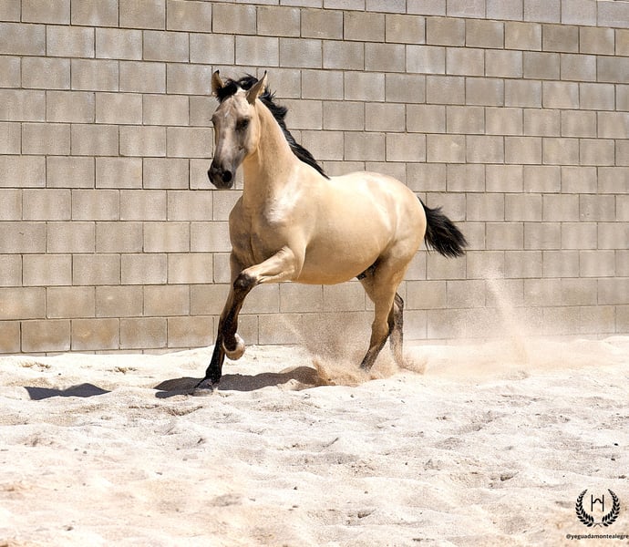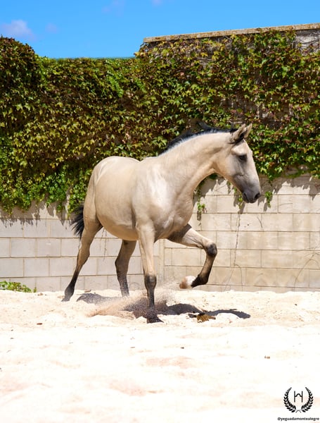 Uranio Monte Alegre 🇵🇹Camada 2024 | Lusitano – Línea Funcional de Doma 🐴 Uranio es un espectacular potro lusitano de capa bayo dorado muy clarito, con cabos negros y una estrella blanca en la frente; crines y cola negras con efecto frosted (escarchado). Nacido el 3 de julio de 2024. Mide 1,55 m a la cruz y destaca por su gran talla y físico barroco, muy racial. Potro muy bien aplomado. Espaldas oblicuas, grupa redonda y una excelente densidad ósea; perfil acarnerado–convexo, súper típico de la raza, con orejas y mirada muy vivas y expresivas. 💪 Con un físico imponente y movimientos armónicos, fluidos y elásticos, Uranio reúne belleza, nobleza y funcionalidad. Será un potro ideal tanto para la doma clásica como para paseos, ocio y disfrute en familia. 🩺 Salud garantizada: aceptamos cualquier prueba veterinaria. Potro desparasitado, con documentación y pasaporte europeo al día. 🔬 Genética de capa: E/x A/a CRcr – Bayo. 🚛 Envíos nacionales e internacionales con empresas especializadas. 📲 Contacto / Contact: 🟢 WhatsApp: +34 639 522 420
