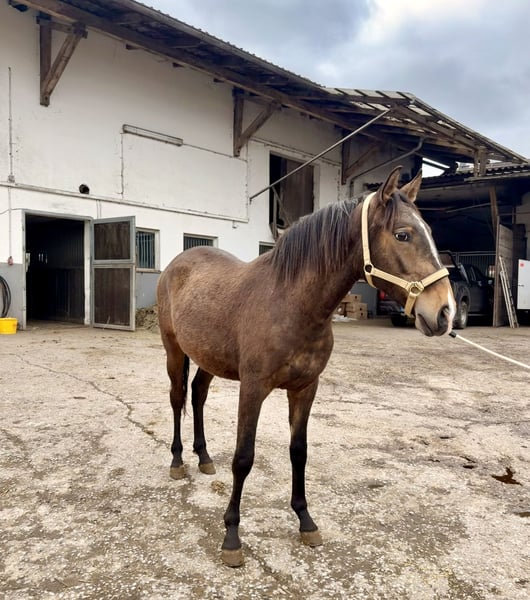 ✨UNCAS✨ Raro esemplare di Lusitano Buckskin, half-sbro di FUEGO FG, con genealogia di élite e enorme potenziale sportivo e da spettacolo. **UNCAS** Caratteristiche: - Razza: Lusitano - Sesso: Stallone - Anno di nascita: 2024 - Colore: Buckskin (testato senza tendenza al grigio) - Altezza al garrese: circa 1,60 m (stima finale) --- Con UNCAS si propone un giovane stallone Lusitano di eccezionale bellezza, grazie al suo colore raro Buckskin con caratteristico dorsal stripe, alla genealogia di alto livello e al suo aspetto espressivo. Un giovane stallone con carisma, qualità e valore genetico – ideale sia per sport, spettacolo che per la riproduzione. --- 🧬 **Genealogia esclusiva:** ✨ **Padre:** AMBAR • Stallone approvato con 68,5 punti • Rappresenta tipicità, maneggevolezza e movimenti espressivi ✨ **Madre:** JOANINHA • Stallone approvato con 73,5 punti ➡️ Una combinazione genetica particolarmente interessante di qualità, espressività e attitudine alla performance. Inoltre, UNCAS è half-brother dell’illustre Lusitano FUEGO FG – nome noto nel mondo Lusitano per espressività, talento e qualità. --- ✨ **Colore, tipo e presenza:** UNCAS è un vero colpo d’occhio, grazie a: • colore Buckskin raro con dorsal stripe ben marcato • un segno distintivo sul viso • linee barocche e compatte • struttura corretta • proporzioni armoniche ➡️ Il suo caratteristico aspetto Lusitano e la sua presenza lo rendono immediatamente riconoscibile e affascinante. --- 🐎 **Movimento e potenziale:** Già ora UNCAS mostra: • movimenti ampi ed elastici • ottimo equilibrio • passo leggero e ritmato • naturale disposizione alla raccolta Queste caratteristiche lo rendono particolarmente interessante per: • Working Equitation • dressage classico • dressage barocco e libero • esibizioni in show ➡️ Un giovane stallone con un effetto “Wow” sul campo. --- 🧠 **Carattere:** • amichevole e curioso • lucido e concentrato • molto piacevole nel rapporto quotidiano ➡️ Un giovane stallone con ottima attitudine e grande desiderio di apprendere. --- 🌿 **Allevamento e salute:** UNCAS cresce in condizioni eccellenti in Germania, ricevendo tutto ciò di cui un puledro sano ha bisogno: • allevamento adeguato per giovani stalloni • fieno di alta qualità e integrazione minerale • abituato a halter e ferratura • completamente vaccinato • finora sano e senza problemi ➡️ Le migliori condizioni per una vita da cavallo da passeggio in salute. --- ⭐ **Perché scegliere UNCAS?** UNCAS combina: ✔ colore Buckskin raro con dorsal stripe ✔ genealogia di alta qualità ✔ half-brother del noto FUEGO FG ✔ movimenti espressivi ✔ tipo barocco Lusitano ✔ carattere amichevole ➡️ Un giovane stallone di grande valore e con un futuro promettente. --- 📞 **Contatti & Visite** UNCAS può essere visitato su appuntamento. Sarò lieto di ricevere richieste serie e di dedicare del tempo a una conversazione personale.