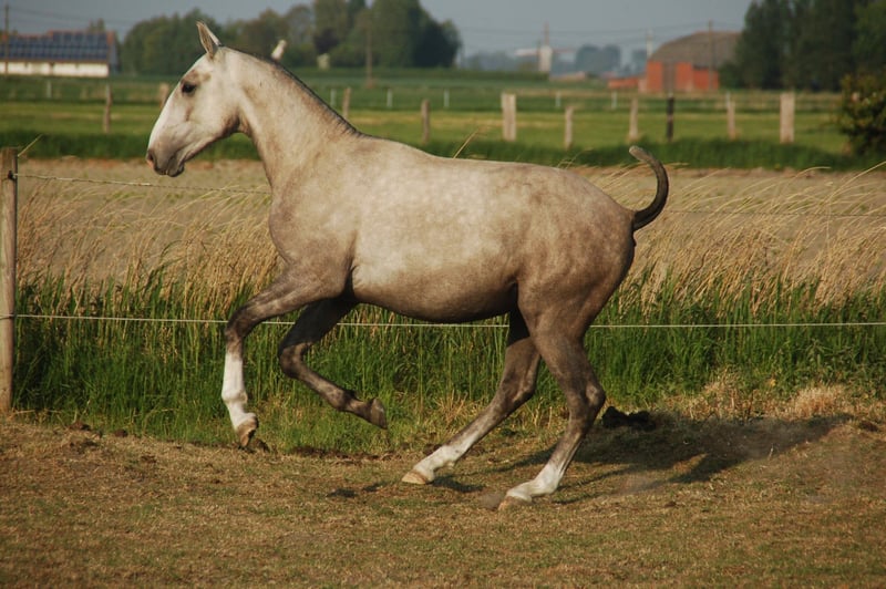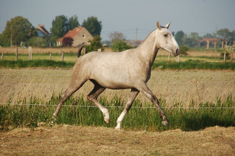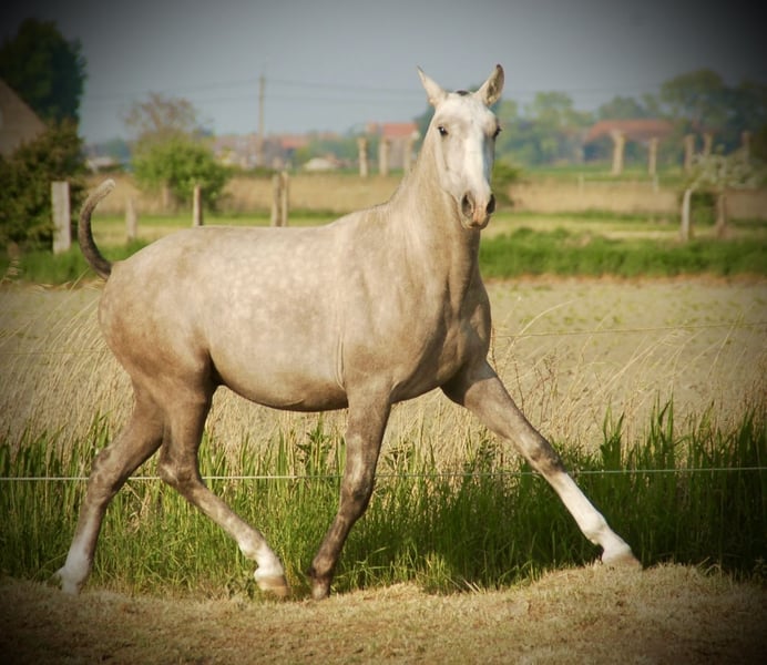 Hongre Lusitanien de 2 ans avec pedigree complet Fils du cheval olympique Fogoso TVF Sa mère est issue des lignées classiques Arsenio Cordeiro (Navalheiro) Super caractère ! Taille finale environ 1,60 m Votre partenaire idéal pour la dressage classique, l'équitation de travail ou les loisirs !