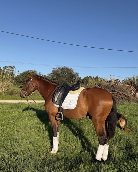 Este jovem cavalo de 3 anos demostra claramente as características de um verdade Lusitano:nobreza equilibrio e grande predisposição para o trabalho Apresenta uma regularidade notável nos três andamentos , sempre elastico e com boa atitude, foi criado sempre num ambiente familiar, neste momento encontra-se em fase de desbaste. Uma excelente oportunidade para quem procura um cavalo com futuro, carácter e raça. Para mais informações não exite em contactar. This 3-year-old horse clearly demonstrates the characteristics of a true Lusitano: nobility, balance, and a great predisposition for work. He shows remarkable consistency in all three gaits, always elastic and with a good attitude. He has always been raised in a family environment and is currently being broken in. An excellent opportunity for those looking for a horse with a future, character, and pedigree. For more information, please do not hesitate to contact us.