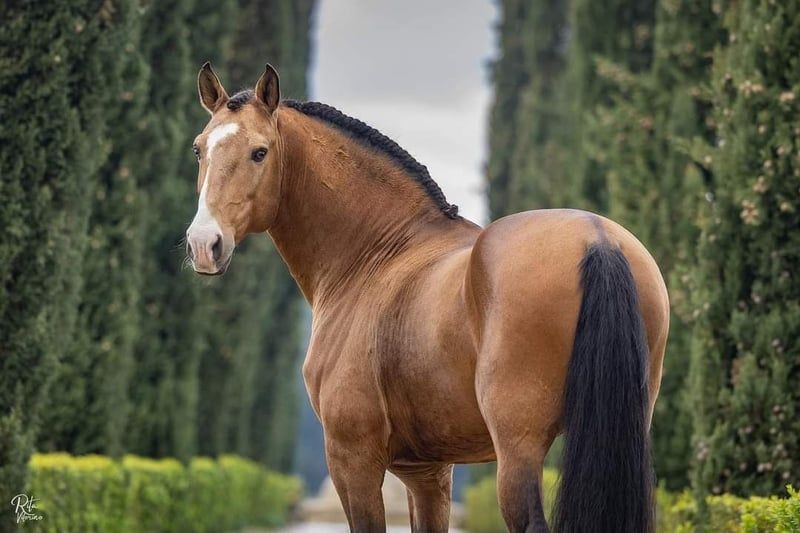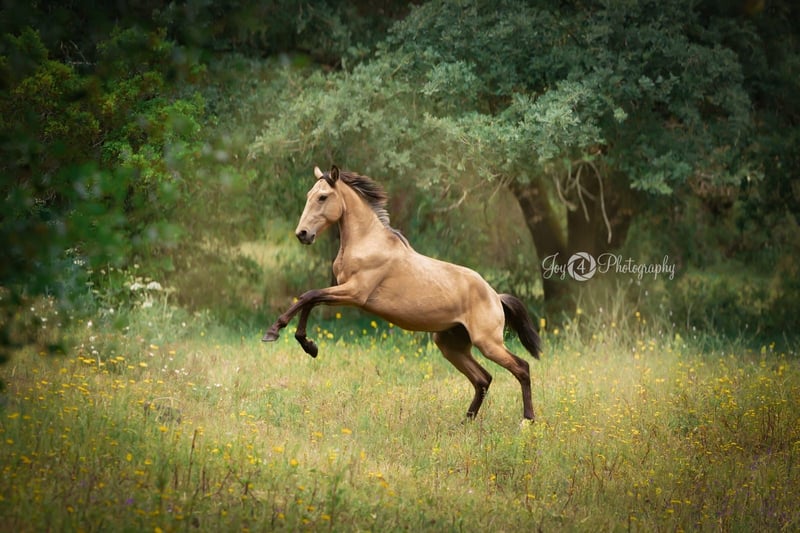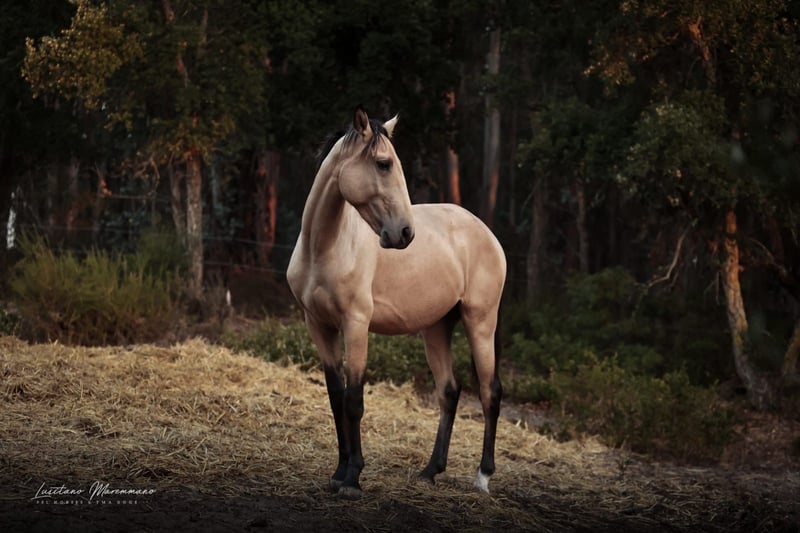 Eleganter Lusitano Nachwuchsstar im Goldmantel Merkmale: - Rasse: Lusitano - Geschlecht: Hengst - Geburtsjahr: 2023 - Farbe: Falbe - Stockmaß: 161 cm geschätzt Dieser junge Hengst besticht durch seine elegante Erscheinung und sein beeindruckendes Potenzial, welches er jetzt schon 2-jährig mitbringt. Er ist bestens geeignet für ambitionierte Reiter, die einen treuen Partner für den Dressursport suchen. Der Vater HERDEIRO DA BROA ist mit 72 Punkten gekört und seine Mutter ist mit 74,5 Punkten, sodass ich ihn auch in der Zucht sehe. Sein Vater ist auf den letzten 3 Bildern zu sehen. Er ist nicht nur äußerlich golden, auch sein Charakter ist aus Gold. Zurzeit lebt er altersgemäß frei auf dem Campo und genießt die Zeit mit seinen Kumpels. Selbstverständlich ist er äußerst verträglich. Weitere Bilder und Videos kann ich gerne bei Interesse zukommen lassen.