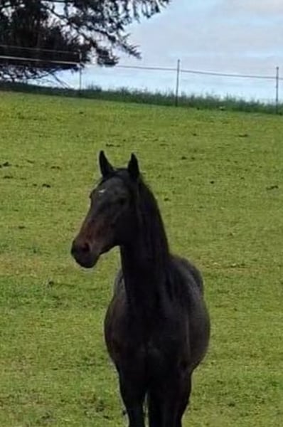 Hübscher, typvoller, gross werdender Gentleman (beherrscht schon Fohlen ABC), mit Top Abstammung (Vater: Gran Prix Pferd, Zucht: Dressage plus x Mutter: internat. Goldmedalliengewinnerin, auf Gangwerk 13,5Pkt.), schw.br., gesund, piropl. frei, nur in beste Hände abzugeben