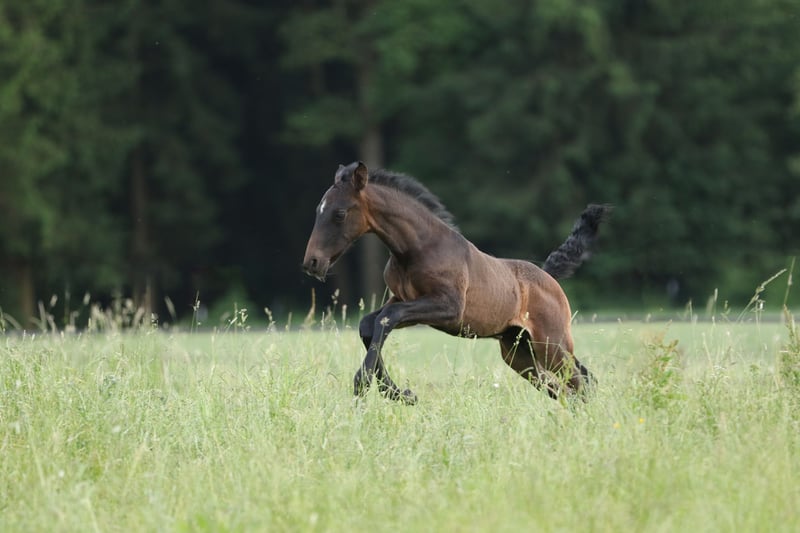 Tiago (geb. 20.05.2023) ist ein super interessierter, mutiger und aufgeschlossener Junghengst mit allerbesten mentalen und physischen Voraussetzungen. Wenn es etwas zu sehen / zu entdecken gibt, ist Tiago vorne dabei. Ein sehr draufgängerisches, dabei aber trotzdem immer aufmerksames und bedachtes Wesen. Tiago wird gut mittelgroß werden. Er hat einen kompakt kräftigen Körper mit stabilem (nicht zu verwechseln mit grob oder plump) Fundament. Voraussichtlich bleibt Tiago dunkelbraun. Er wächst (wie alle Junghengste) in unserer Junghengstherde auf. Zur weiteren Aufzucht und/oder späteren Grundausbildung/Beritt kann er gerne hier bleiben. Aktuellere Fotos folgen in Kürze. Hier der Link zu Tiago PSL direkt auf unserer Website: https://yeguada-armin-rahn.de/tiago/