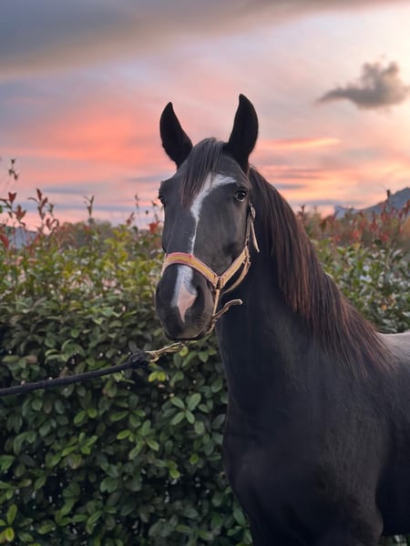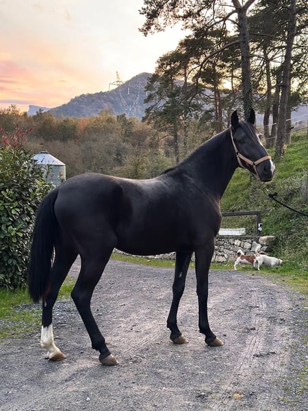 2,5 Jahre alter schwarzer Lusitano-Hengst. Exzellente Blutlinien. Sehr gute Bewegungen für die Dressur. Das Pferd befindet sich in Spanien.