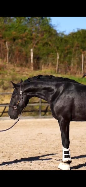 A black pocket rocket 🚀 This is a 4yro Lusitano stallion with 160cm and he is having a turbine in his hindlegs. Very powerful mover with an amazing movement mechanism. He is freshly started under the rider and is showing a lot of strength and balance. A big walk, a big trot and a big canter. It’s a little aeroplane and ready to lift up with the right trainer. If someone is looking for a not too big powerhouse with big movements, here he is. The horse can stay for further training with different trainers. We can organise everything. Located in north Spain 🇪🇸 More informations over PM or whatsapp 00491786997334 or https://t.me/toplusitanos for p.r.i.c.e.s. Jasmin from Top-Lusitanos 🤗
