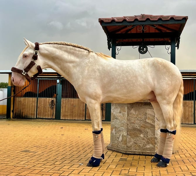 Elegant Lusitano Stallion for Sale – Perfect for Dressage! We are offering an impressive Lusitano stallion, born in 2022. This exceptional Cremello captivates with its refined appearance and balanced temperament. Standing at 16.1 hh, he is ideally suited for ambitious dressage riders who value quality and character. The young stallion demonstrates promising basic gaits and a natural willingness to develop further. His eagerness to learn and friendly nature make him an ideal partner for high-level dressage. For inquiries or additional information, please feel free to contact me. Schedule a viewing and see for yourself what makes this horse so special! Location: Spain – transportation can be arranged worldwide
