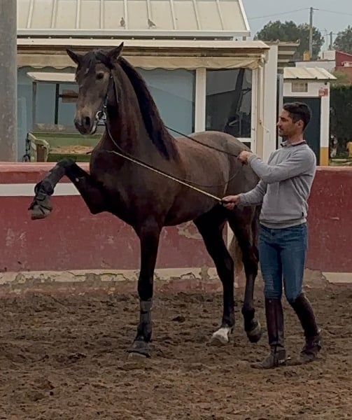 ✨SALGUEIRO: SUPER IMPRESSIVE PSL STALLION WITH TOP PEDIGREE/SEHR IMPOSANTER PSL HENGST MIT TOP PEDIGREE✨ Breed - Rasse: Pura Sangre Lusitano 🇵🇹 Gender - Geschlecht: Stallion/Hengst Age - Alter: 02/2022 Height - Größe: 1,62m Education - Ausbildung: Half-Pass/Traversale, Piaffe, Passage, Spanish Walk Location - Standort: Valencia, Spain/Spanien ✔️fully vetted with all x-rays Salgueiro is a 4 years old PSL with a great temper & lots of potential for the dressage arena as well as for the working equitation! He a a great worker, has a clear head and always want s to please his rider! He is son of the famous PSL Stallion Don Juan de Cabecau, which combines the old, baroque type with modern movements, which are excellent for the classical dressage! His half-brother is a FEI Stallion Imperador D‘Cabecau! His grandfather from mothers side is also N important horse in breeding scene: Almasor, who is known for producing offspring with high functional ability, with some active in breeding and dressage. He is recognized in international pedigree databases for his lineage and breeding, contributing to the breed’s reputation for agility and intelligence. Salguero for sure comes from the very best hands! He is super easy to handle and is - even in a mixed stables with 180 - a really gentlemen and not showing any stallion manners. For more Informations and videos, please do not hesitate to contact us ➡️ +34 622 509 702 We speak 🇬🇧🇩🇪🇪🇸