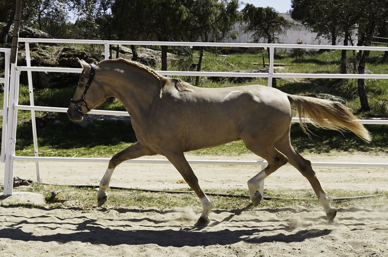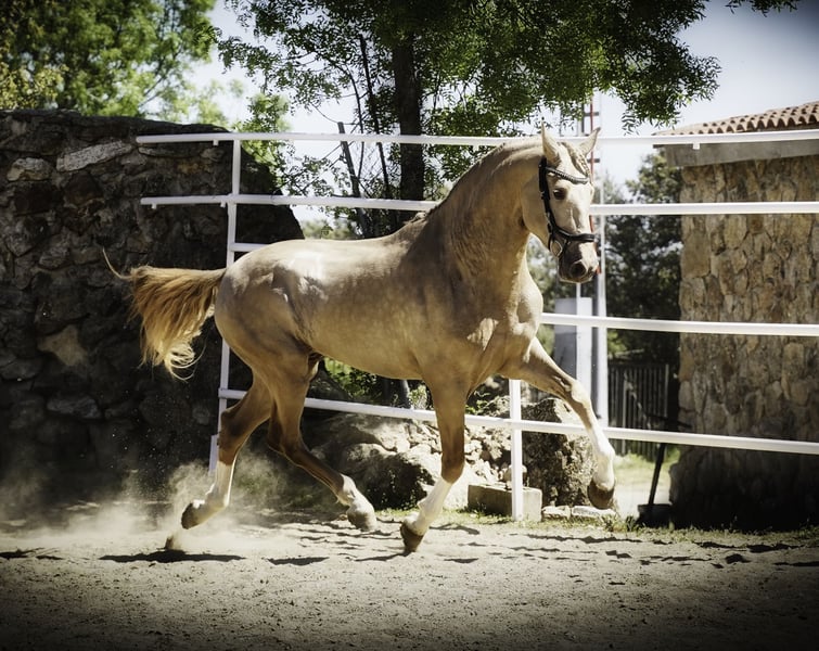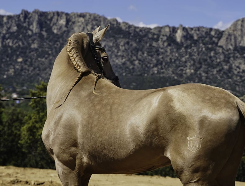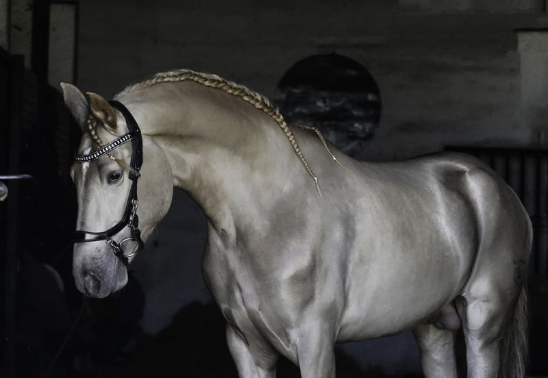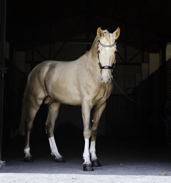 🐴 Isabelo Excellence – Presence & Early Talent 🐴 A striking Lusitano / PRE stallion, presenting a rare and captivating Isabelo coat (black), rising 4 years old and already standing at an impressive 1.70 m. This young stallion stands out for his exceptional presence and natural charisma, combined with a level of training and rideability that is truly beyond his age. Under saddle, he is magnificently ridden, showing a correct, uphill balance with three quality gaits and a particularly expressive, well-balanced canter. His work reflects a solid foundation, being very well advanced in dressage for such a young horse, with clear potential for higher levels. His character is outstanding — extremely kind, cooperative and easy to handle, maintaining a calm and willing attitude both in daily work and new environments. A true pleasure to ride and manage, even as a stallion. ✨ Key Highlights: 🐴 Rare Isabelo coat (black) 🐴 Impressive size – 1.70 m at 4 years old 🐴 Magnificently ridden for his age 🐴 Very good natural movements 🐴 Well-balanced and expressive canter 🐴 Advanced dressage level for a young horse 🐴 Super kind and easy stallion 🐴 Excellent rideability and temperament A rare opportunity to work with a young stallion combining presence, talent and an exceptional mindset, ready to continue progressing at a high level.