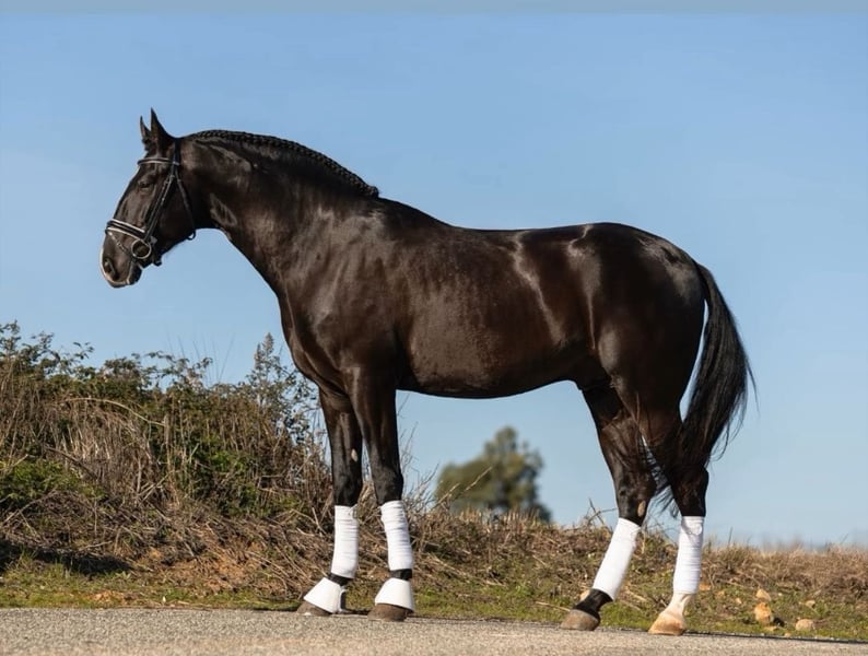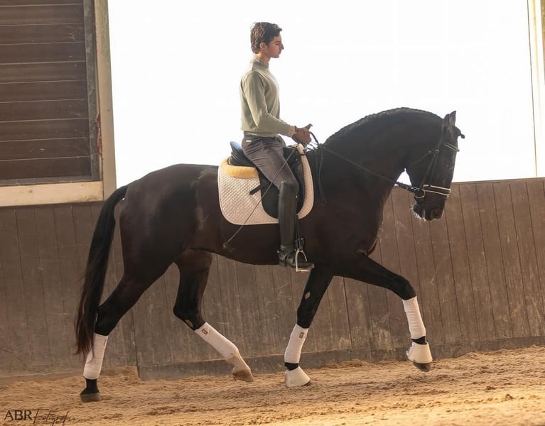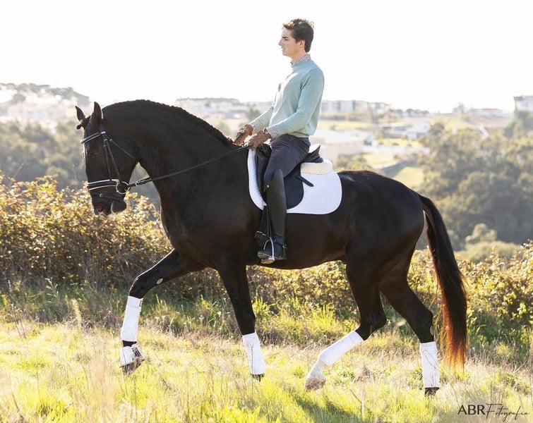 A black dream Lusitano stallion ❤️ This is a beautiful and baroque 3yro PIRO FREE Lusitano stallion with 172cm and xrays available. He is not only beautiful outside, he also has a heart of gold. Such a friendly and gentle calm young stallion is not standard. He is ridden by a 14yro student of the trainer and the horse is doing amazing with her. He is basic ridden in all three gaits and also knows the countryside already. Located in Portugal 🇵🇹 More informations over PM or whatsapp 00491786997334. Jasmin from Top-Lusitanos 🤗