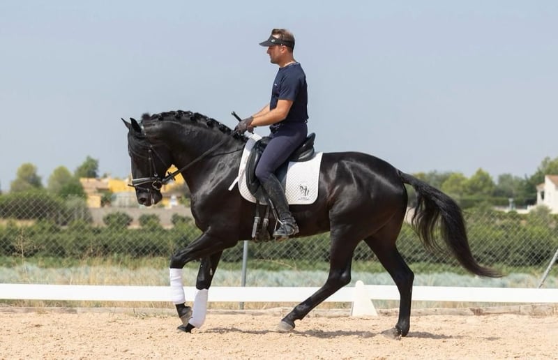 RIMO OC: FUTURE DRESSAGECRACK FOR HIGHEST DEMANDS - /DRESSURKRACHER FÜR HÖCHSTE ANSPRÜCHE Breed - Rasse: Puro Sangre Lusitano (APSL🇵🇹) Gender - Geschlecht: Stallion/Hengst Age - Alter: 2021 Height - Größe: 1,63m Education - Ausbildung: Half-Pass/Traversale, Changes/Wechsel Location - Standort: Spain/Spanien - Valencia ✔️fully vetted with all x-rays ✔️PIRO FREE 🌎 Worldwide Shipping available For more Informations please contact us via What s App ➡️ +34 622 509 702 We speak 🇬🇧🇩🇪🇪🇸
