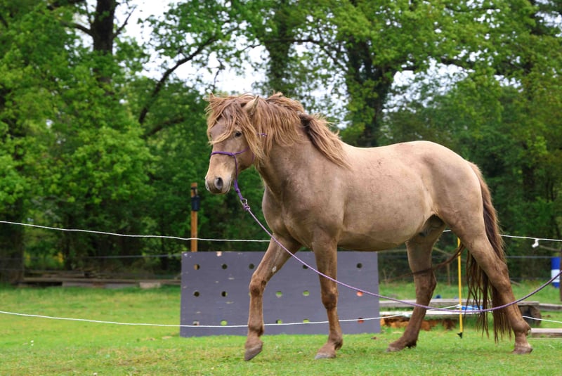 *LORYON D’IBERYN – Étalon Double Pearl Baroque *Étalon approuvé Royal Belgium Palomino*, 4,5 ans, *1m63/1m64*, modèle baroque. * né en france et enregistre dans le studbook "OC" issue de deux parents pur sang lusitanien mais pere non approuvée a la saillie (COCA & LOLYTA) . *Robe Bai Double Pearl* – extrêmement rare. *Testé EE Aa PRLPRL, transmettra donc a 100% de ses poulains un gene noir et un gene pearl *IMPORTANT : Il n’est PAS Lusitanien PP.* *Approuvé à la reproduction au studbook Royal Belgium Palomino* = produit des poulains enregistrables RBP. *GÉNÉTIQUE + SANTÉ *Négatif de toutes les maladies génétiques* *PRLPRL homozygote* = 100% de ses poulains porteront le gène pearl *EE Aa* = 100% base baie, aucun poulain alezan. *Aucun souci de santé*, chez moi depuis ses 8 mois. Jamais boiteux ou malade. *CARACTÈRE + ÉDUCATION Débourré mais reste vert dans le travail (n'a que 4,5 ans), je préfère prendre mon temps. Fait surtout de la balade (seule ou en groupe) + un peu de mountain trail. CARACTERE = Joyeux, Bon vivant, facile, curieux, joueur, proche de l’homme, calme, zen, volontaire !* Vit dehors en troupeau toute l’année. S’entend aussi bien avec un troupeau d’étalons qu’avec son harem de juments + poulains à la belle saison. *Pas dominant ni bagarreur* , avec les autres chevaux il est plutot joueur, curieux, cool avec les copains. Il reste jeune dans sa tête. *deja papa de plusieurs poulains* – plusieurs poulains à son actif, respectueux des juments. *À JOUR Ostéopathe + dentiste + maréchal-ferrant + vermifuge + *vaccins Grippe + Tétanos + Rhino faits*. *IDEAL pour = *Équitation de travail, dressage, spectacle, TREC, randonnée, loisir ou reproduction