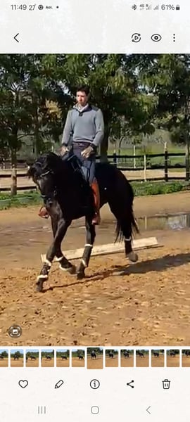 Hermoso semental negro en venta. Tranquilo, muy enérgico, con movimientos hermosos. Muy buen pedigree, padre y abuelo ganaron campeonatos mundiales y olímpicos en drenaje. Aprendiz muy rápido.
