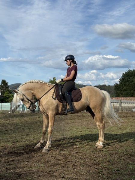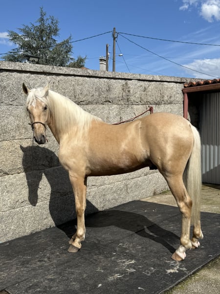 Lusitano - Kreuzung, mit Pass. Edelmütig und mit sehr gutem Charakter. Eingeführt in die klassische Dressur. Exzellente Bewegungen, Gangarten und Stellung, die ihn sehr bequem für den Reiter machen. Reagiert schnell auf das Lernen und hat die für Lusitanos charakteristische Kraft und Ausdauer. Verspricht eine glänzende Zukunft. Ideal, um täglich das Reiten zu genießen.