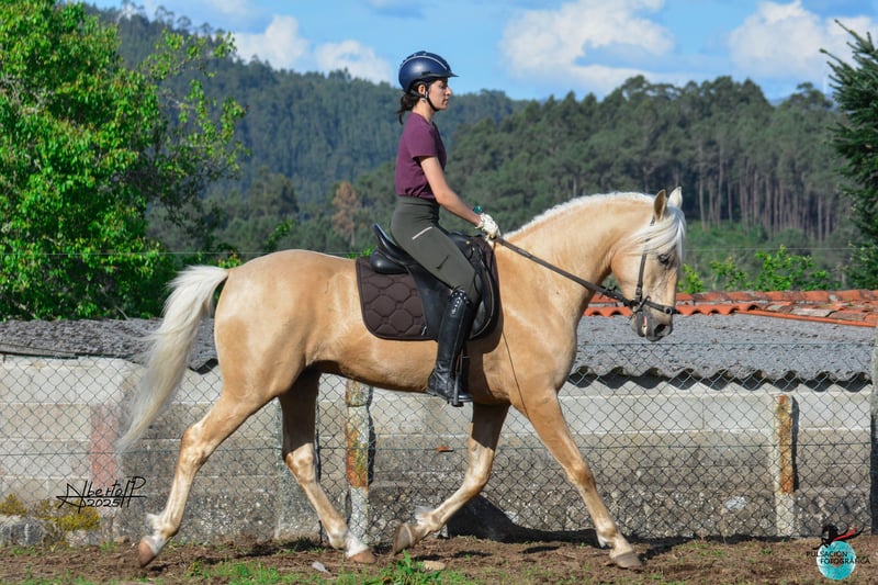 Lusitano Horse - Crossbred, with Passport. Noble and with a very good character. Started in Classical Dressage. Excellent movements, gaits, and positioning, making it very comfortable for the rider. Responds quickly to learning and has the power and endurance characteristic of Lusitano horses. Promises a bright future. Ideal for enjoying riding on a daily basis.