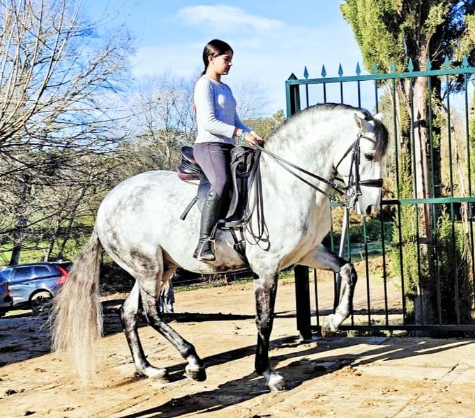 Este semental PSL proviene de una genealogía de primera categoría: Hierro Sociedades das Silveira (Braga) y posee un carácter muy noble. Representa a la perfección el tipo de Lusitano. Actualmente está en entrenamiento para Gran Premio: en la piaffe, passage, pirueta y cambios de pie demuestra su talento y motivación. Como semental de reproducción está aprobado y puede ser utilizado oficialmente para la cría (semillas congeladas). Un caballo para amantes y conocedores del Lusitano auténtico, con una formación excepcional. Para más información, no dude en contactarnos por WhatsApp al 0175 861 45 35.