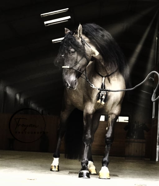 Montañés är född 2018 och visar en enorm talang under sadeln! Vid sina 4 år utför han alla sidorörelser med superbalans och fokus på sitt arbete. Han står 165 cm och är ännu inte färdigvuxen. https://youtu.be/yoXdcAt-K2k Montañés är en Lusitano med pass registrerat i ANCADES stambok. 32 Perfekt röntgenstrålar & piroplasmosis negativ. Extraordinär intelligent och lekfull ung hingst med en lovande framtid under sadeln. Om du vill lägga till lite speciell päls till dina föl är han det bästa valet och bryr sig om DUN-genen som är ansvarig för zebraränder på benen. För mer information kontakta oss på 34 692 43 52 55 eller 32 471 37 48 76