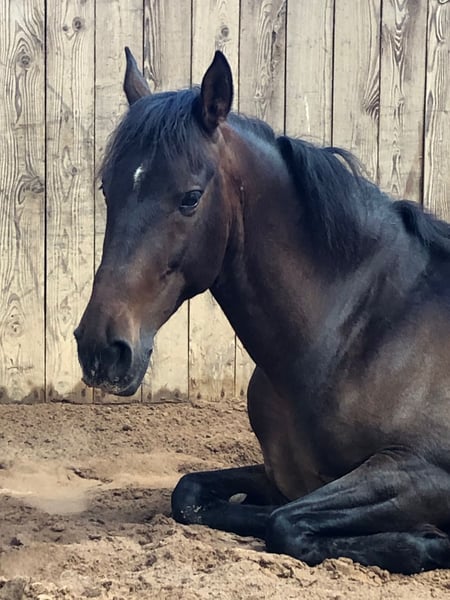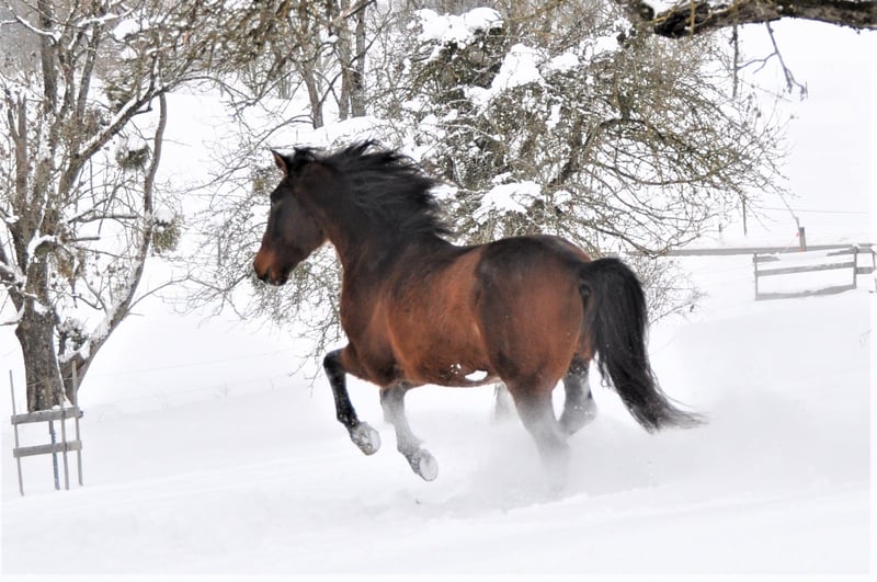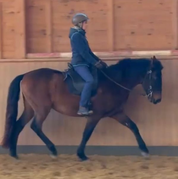 Fandango, Lusitano ohne Papiere (Cruzado), 10 Jahre, Stockmaß 154. Ich habe ihn mit 5 J gekauft. Wir haben einiges gemeinsam erlebt. Fandango ist vom Charakter: lieb, zugewandt und bezogen, intelligent und aufgeweckt, sensibel und feinnervig, einerseits coole Socke, andererseits noch unsicher im Gelände, er will alles recht machen - auch über seine Schmerzgrenze hinaus, er mag keinen Druck oder zu viel Energie, er kommt gut alleine klar, blüht auf in guter Gesellschaft, ist sehr verspielt und neckt gerne, ohne andere Pferde zu verletzen, ist oral aktiv (schnabelt gerne an allem herum), tanzt gerne (ist wendig und spielerisch in seinen Bewegungen). Fandango ist sehr bezogen auf seinen Menschen, daher nicht geeignet für mehrere Reiter. Kein Gewichtsträger. Gut gearbeitet am Boden, weniger vom Sattel aus. Er hat superweiche Gänge und reagiert fein auf Hilfen. Er ist unverbraucht, weil schonend und liebevoll gearbeitet. Aus verschiedenen Gründen mussten wir immer wieder Trainingspausen einlegen und jeweils neu beginnen. Gelände kennt er als Handpferd, von vielen Spaziergängen und einigen Ausritten. In Begleitung eines sicheren Pferdes ist er cool, alleine jedoch noch unsicher. Im Winter 2024/2025 ist er an equinem Asthma erkrankt aufgrund von schlechter Heuqualität (Staub und Schimmelpilz). Inzwischen sehr gut regeneriert, aber noch nicht wieder in super Kondition (näheres persönlich). Aufgrund der Erkrankung und daraus resultierender Stallwechsel wurde er knapp ein Jahr lang nicht geritten. Seit Januar reite ich ihn wieder. Ausbildungsstand entsprechend angeritten. Gerne im persönlichen Gespräch mehr Informationen dazu. Ich wünsche mir für ihn einen lieben und verantwortungsvollen Menschen mit reiterlichem Können und Erfahrung, der ihn weiter ausbildet und ihm einen festen und sicheren Platz in seinem Leben gibt. Idealerweise mit Privatpferdehaltung, da es dort möglich ist, auf die individuellen Bedürfnisse einzugehen. Offenstall und stabiler Herdenverband, viel Auslauf und Platz zum Spielen. Er ist eher rangniedrig und gliedert sich unkompliziert in eine neue Herde ein. Schön wäre auch eine naturnahe Haltung, in der er einfach Pferd sein darf und nicht geritten wird. Fandango wurde erst mit 5 Jahren gelegt und springt auf, weshalb eine gemischte Herde nicht zu empfehlen ist. Ich gebe ihn aufgrund der aktuellen gesundheitlichen Situation unter Wert ab. Platz vor Preis in allerbeste Hände.