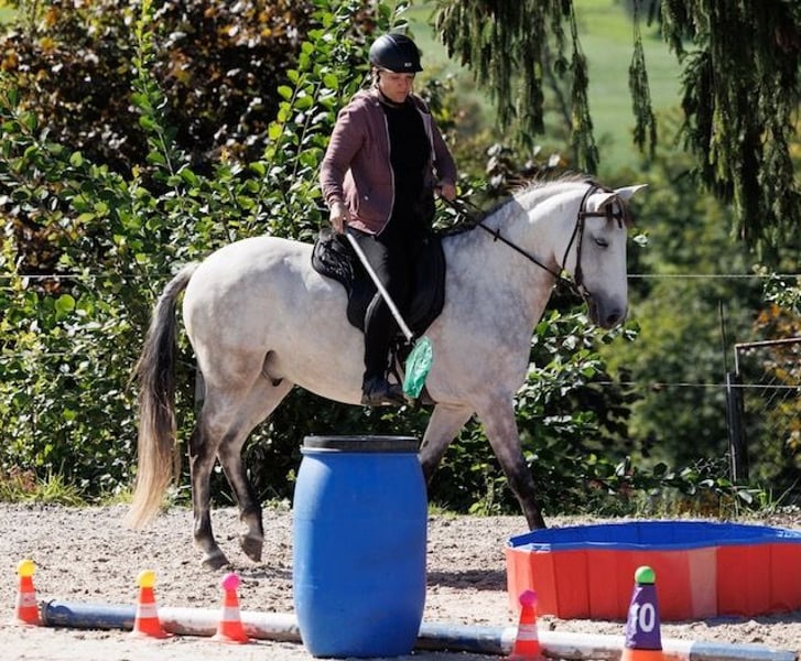 Je cherche une nouvelle famille pour mon merveilleux hongre Jango. Ce départ n’est pas facile pour moi, mais je ne peux plus lui consacrer autant de temps qu’il le mérite. Il ne sera confié que si tout est parfait et qu’il trouve une personne pour la vie. Jango est un hongre lusitanien de 12 ans, mesurant environ 1,55 m, et il est à mes côtés depuis sept ans. Il a été doucement mis en selle dès l’âge de cinq ans et a pu évoluer à son propre rythme. C’est un cheval sensible, introverti, doté d’un grand cœur. Ceux qui lui offrent sécurité et clarté auront un partenaire incroyablement loyal, toujours soucieux de faire ce qui est juste. Jango souhaite faire plaisir, il est joueur, réfléchi et crée un lien profond avec « son » humain. Que ce soit pour des balades en patrouille, du Horse Agility, du saut en liberté, du dressage avec la garrocha ou du travail en liberté, Jango participe avec plaisir et motivation. Il adore passer du temps avec son cavalier et apprendre de nouvelles choses. Bien entendu, il se montre fiable aussi bien seul qu’en groupe en extérieur. Il a un bon appétit d’avance. Il est patient et prudent avec les enfants, mais il ne doit pas devenir uniquement un cheval pour enfants. Il a besoin d’un adulte de référence qui lui donne de la sécurité. En tant que cheval de famille, son tempérament affectueux en fait néanmoins un choix idéal. Ce qu’il aime moins : - Le chargement en van demande un peu de finesse (le transport en voiture est sans problème) - Les injections - La pluie, le froid – il apprécie une couverture dans ces conditions Jango est en bonne santé, il bénéficie de contrôles dentaires réguliers ainsi que de séances de physiothérapie et d’ostéopathie. Je souhaite pour Jango une place où il sera vu, accueilli, et considéré comme un partenaire – auprès d’une personne qui lui offrira du temps, de l’attention et beaucoup d’amour.