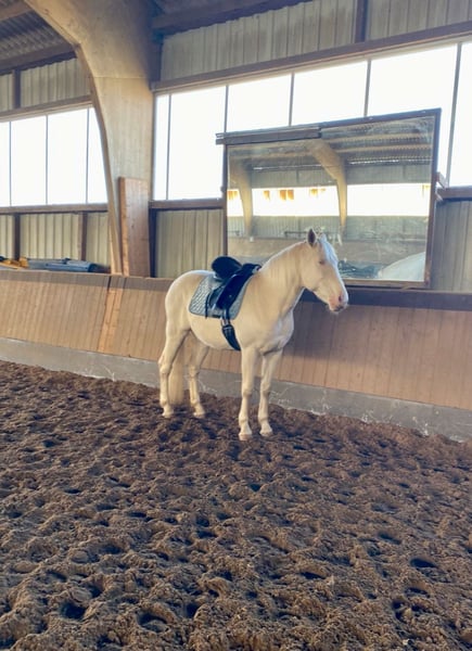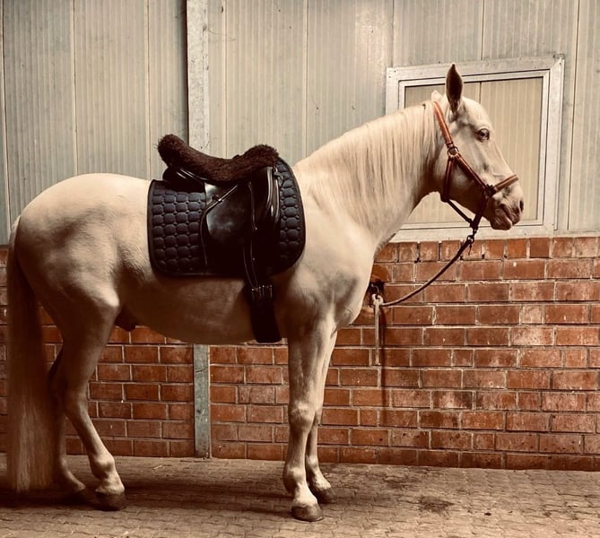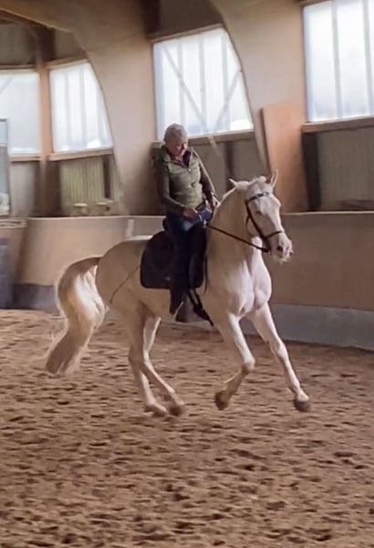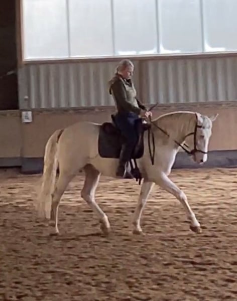 Reliable, relaxed Lusitano seeks a new sphere of activity. Aramis is trained in all basic gaits and masters all lateral movements as well as backing up. Short strides, canter on the outside, and Spanish walk started from the ground. First elevations on the hindquarters. He is loading-friendly, farrier-friendly, and well-mannered in handling. Not suitable for beginners and children. Better for ambitious leisure riders, advanced riders, academics, dressage riders, equestrian art, show riders, working equitation, or jumping. The horse wants to work and be developed, but remains calm, reliable, and relaxed in its work and does not bolt. He is also rather relaxed and calm in handling. A sensitive, willing to learn, attentive Lusitano. His character is honest, proud, reserved, majestic, and good-natured. This horse has not had any bad experiences in its life but can still react stallion-like and distrustfully. Typical Lusitano character.