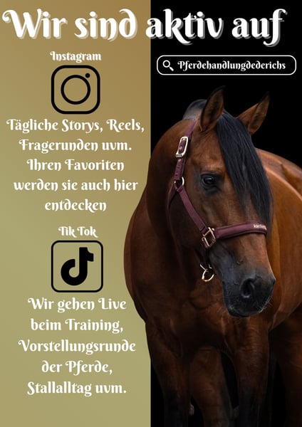 Garabato ist ein 2011 geborener Lusitano Wallach ca. 155 cm v. Zorro, Raxito x Lidador, Almonda II *Garabato* wunderschöner im hengsttyp stehender Wallach mit viel Ausstrahlung. Garabato ist gut ausgebildet und beherrscht zudem höhere Lektionen. Er eignet sich auch für Anfänger und ängstliche Reiter sowie Jugendliche. Ein Pferd mit dem der ambitionierte gute Reiter wie auch der schwache Reiter viel Freude hat. Im Gelände brav und cool, ob alleine oder in der Gruppe. Fremde Umgebungen meistert er auch cool. Er springt auch gerne mal über einen Baumstamm, kann den spanischen Schritt und liebt Bodenarbeit. Er springt fliegende Wechsel, geht Seitengänge du bietet auch die Pirouette an. Trotzdem ein Pferd mit dem auch einfach nur ohne Sattel reiten kann und viel Freude hat. Er hat super bequeme GGA. Gelassenheitstraining macht der super unerschrocken mit !!! SCHAUEN SIE SICH UNBEDINGT SEIN VIDEO AN !!! Im Umgang verschmust, kennt es sogar von Kindern umsorgt und geputzt zu werden. Ein Traumpferd durch und durch, ob Optik oder Charakter. Er bringt eine aktuelle große AKU mit. Ein aktuelles Video finden Sie hier in der Anzeige oder unter folgendem Link: https://www.youtube.com/watch?v=vNOf2MhawdE Pferdehandlung Dederichs – Ihr Partner für den Pferdekauf Kontakt & Erreichbarkeit: Anfragen bitte ausschließlich telefonisch unter 0173/9792139 Montag – Freitag: 09:00 – 18:00 Uhr Samstag: 09:00 – 15:00 Uhr Sonntag: Ruhetag Folgen Sie uns auf Social Media! Erleben Sie unseren Alltag mit den Verkaufspferden auf Instagram, TikTok & Facebook unter Pferdehandlung Dederichs Rabatt: Bei sofortiger Mitnahme Ihres neuen Traumpferdes erhalten Sie zwischen 5 %– 10 % Rabatt Probereiten & Vorführen: • Probereiten: 30 € pro Pferd (max. 2 Reiter), Betrag wird beim Kauf angerechnet • Feiertage: Proberitt 50 € • Vorführung durch unsere Bereiter: 25 € pro Pferd (Vorreiten, Bodenarbeit etc.) Ankaufsuntersuchung & Transport: • Viele unserer Pferde besitzen bereits eine AKU • Sie können selbstverständlich Ihren eigenen Tierarzt mitbringen • Gerne organisieren wir eine Untersuchung • Wir unterstützen Sie auch gerne beim Transport ins neue Zuhause Weitere Verkaufspferde: In unserem Stall stehen weitere Verkaufspferde, die noch nicht online sind. Falls Ihr Traumpferd noch nicht dabei ist, zögern Sie nicht, uns zu kontaktieren. Wichtige Hinweise: • Stockmaß-Angaben sind geschätzt und nicht exakt nachgemessen • Alle Beschreibungen sind subjektive Einschätzungen des Verkäufers und keine zugesicherten Eigenschaften Weitere Informationen finden Sie unter: www.Pferdehandlung-Dederichs.de