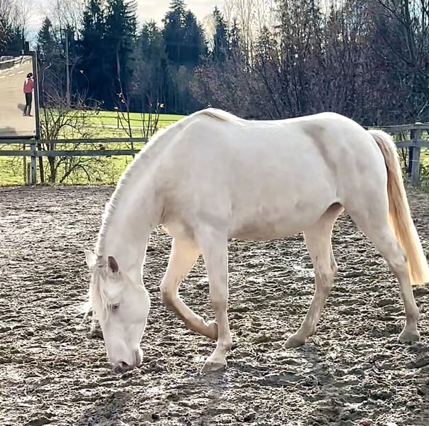 Ein besonderes Pferd, das man nicht sucht – sondern findet. Unser "Jogi" ist ein reinrassiger Pura Sangre Lusitano mit blauen Augen und blauem Buch und stammt aus einer erstklassigen Zucht in Spanien. Mit 3 Jahren vereint er alles, was man sich von einem besonderen Pferd wünscht. Jaguar ist kastriert und ein echtes Gute-Laune-Pferd – freundlich, menschenbezogen und dabei außergewöhnlich klar im Kopf. Seine fröhliche und dennoch ruhige, ausgeglichene Art macht ihn zu einem Partner, dem man sofort vertraut. Lieb im Umgang, völlig unkompliziert, ehrlich im Wesen und mit einer natürlichen Präsenz, die berührt. Aufgewachsen in der Herde, in der freien Natur geboren, durfte Jaguar genau so Pferd sein, wie es für Körper und Seele richtig ist. In der weiten Landschaft der Extremadura in Spanien hat er starke Nerven, gesunde Bewegung und soziale Intelligenz entwickelt – beste Voraussetzungen für ein gesundes, ausgeglichenes und starkes Pferd. Er bringt nicht nur hervorragende Gene mit, sondern auch Charakter, Freude und innere Ruhe. Jaguar ist ein Herzenspferd. 1,5 jährig kam er von Spanien zu uns nach Bayern. Wir haben ihn zusammen mit seinem Halbbruder gekauft, von Anfang an mit der Voraussetzung, dass wir ihn wieder verkaufen, wenn wir seinen Menschen gefunden haben. Bisher haben wir diesen Schritt so gut es geht verdrängt. Er hat nie etwas falsch gemacht, er ist ein wahnsinnig tolles Pferd und wir werden sehr traurig sein, wenn er in sein neues Zuhause umzieht. Bis jetzt ist er mit unseren Jungs mitgesaust, ist sehr sozial und gut verträglich. Er kann alles, was ein 3-jähriger können sollte (longieren, Bodenarbeit, Hänger, Schmied). Er hat super Hufe und läuft Barhuf. Er ist wunderschön, hat eine besondere Aura und seine Mähne wächst täglich! Da wir etwas bekannter sind und nicht unterscheiden können, wer es ernst meint und wer nur einen Sonntagsausflug zu uns machen möchte, verlangen wir eine "Schutzgebühr" von 250€, um Jaguar anzuschauen bei uns vor Ort, die beim Kauf wieder angerechnet wird. Gerne schicken wir auch ein Video, das liess sich hier nicht hochladen anschreiben unter Whatsapp 004915228557720! Wir bitten um Dein Verständnis und freuen uns auf Dich!!
