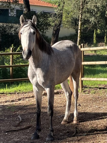 My name is Sibelius, and I will soon be four years old. I was born here at the stud farm in Portugal, raised in a herd on free-range pasture with the best care from my humans, and I have already gained my first riding experience. Now, I am looking for "my person" to stand by my side, with whom I will bravely face all future adventures together. I'm not very tall – but there are people who prefer a horse of compact size – and my true size is my loyal character. I am "only" gray and will become a grey (schimmel). My mother says, "A good horse has no color," so I am trying my best to be the best horse for you. Because one thing is certain: I am a genuine Lusitano, with all the qualities of this breed, and most importantly, I am completely healthy with flawless X-rays. I have also inherited some wonderful traits from my parents: my conformation is harmonious and perfect, and I am blessed with beautiful, elastic gaits. Would you like to get to know me so I can show you what I am capable of? Then we two can achieve great things and prove that even small horses can accomplish big dreams.