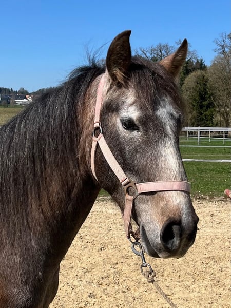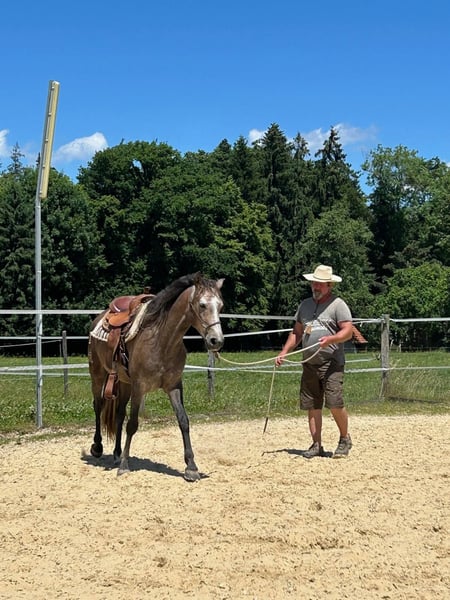 From the very beginning, this Lusitano gelding impressed with his attentive and rather cautious nature. In the pasture, it quickly became apparent what possibilities he was created for: quick and agile, playful and joyful, proudly showcasing his abilities to the other horses, he demonstrated that he is a working horse. The Lusitano gelding approaches humans with great respect and learns quickly, always showing interest but never allowing himself to be forced into anything. The gelding is currently in training and will continue to be educated for another 3 months. We see great potential in him; he has a beautiful, correct conformation, and his character leaves much to be desired. If you are looking for a versatile horse and enjoy working equestrian disciplines, then Romano is surely the right one for you.