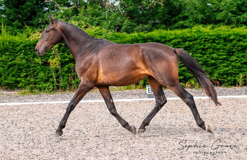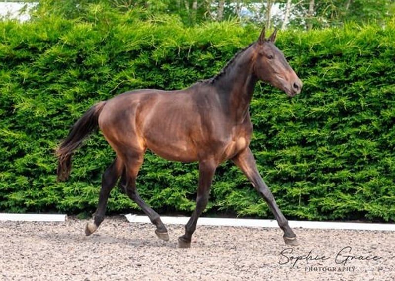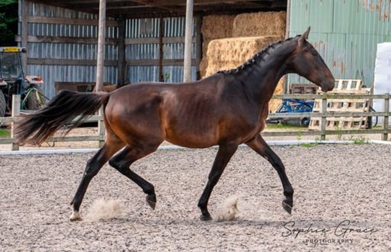 Lusitano x Hannoveraan Prachtige 2-jarige ruin met de fokkerij, beweging en bouw om uit te blinken in een dressuurhuis. Wordt naar verwachting minstens 16.2hh als hij volledig is volgroeid. Hij heeft een grote gedurfde uitstraling maar is vriendelijk en zacht in de omgang. Zijn vader, Equador MVL, behoeft geen introductie in de dressuurwereld, want hij nam deel aan de Olympische Spelen van 2020 in Tokio. Zijn gefocuste houding en expressieve bewegingen komen duidelijk naar voren en we zijn er zeker van dat deze jongen de trainbaarheid van het lusitano ras heeft geërfd. Zijn moeder uit de beroemde De Niro-stam heeft jonge paarden die nu worden geproduceerd met zeer opwindende resultaten. Regelmatig bekapt en ontwormd, volledig gevaccineerd. AES paspoort. Beschikbaar voor bezichtiging. Noordwest VK.
