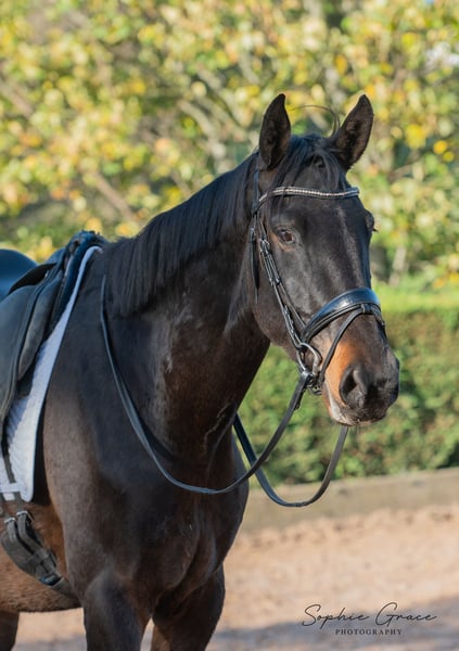 Lusitano x Hanovarian Stunning 3 year old gelding with the breeding, movement and conformation to excel in a dressage home. Expected to make at least 16.2hh when fully mature. He has a big bold presence about him but is kind and gentle to handle with an exceptional temperament. Now lightly backed by a professional rider and turned away for the winter, he has proven to be very trainable and responsive at every stage in his education. His sire, Equador MVL, needs no introduction in the dressage world, having competed in Tokyo at the 2020 Olympic Games. His focused attitude and expressive movement have come through and we are sure this boy will have inherited the trainability of the lusitano breed. His dam from the famous De Niro line has young horses being produced now with very exciting results. Regularly trimmed and wormed, fully vaccinated. AES passported, has seen the dentist, loads and is very well handled. Available to view anytime. North West UK.