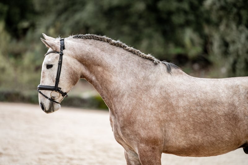 Se ofrece a la venta un magnífico caballo castrado, nacido en 2022, de color tordo. Hijo de nuestra yegua Malika LD (x Dragao das figuras) Este ejemplar cuenta con una excelente preparación en doma clásica, se ha comenzado con los principio básicos de Natural Horsemaship, mostrando buen carácter y potencial para seguir desarrollándose en esta disciplina. Ideal para jinetes que buscan un compañero confiable y con proyección en el mundo de la equitación. Para más información y detalles, no dudes en contactarnos.