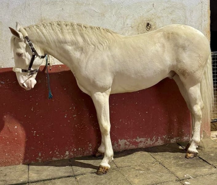 Wunderschöner und sehr gut gebauter Lusitano Wallach in der Sonderfarbe Cremello mit blauen Augen. Er ist super brav, auch für schwächere Reiter geeignet auf dem Platz sowie auch im Gelände. Ein Pferd zum genießen und Spaß haben und zudem auch noch gut aussehen;-)