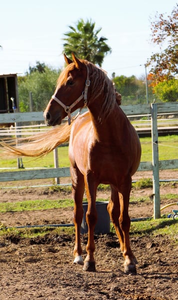 Lenny est un Lusitano-mix de 4 ans, monté en douceur depuis environ six mois. Il possède d'excellents allures de base, se montre très proche de l'humain et travaille toujours avec motivation. Nous pouvons l’envisager aussi bien comme partenaire de loisir fiable que pour la Working Equitation. N'hésitez pas à nous contacter si vous êtes intéressé. D’autres vidéos sont disponibles. Lieu : Portugal – un transport peut être organisé.