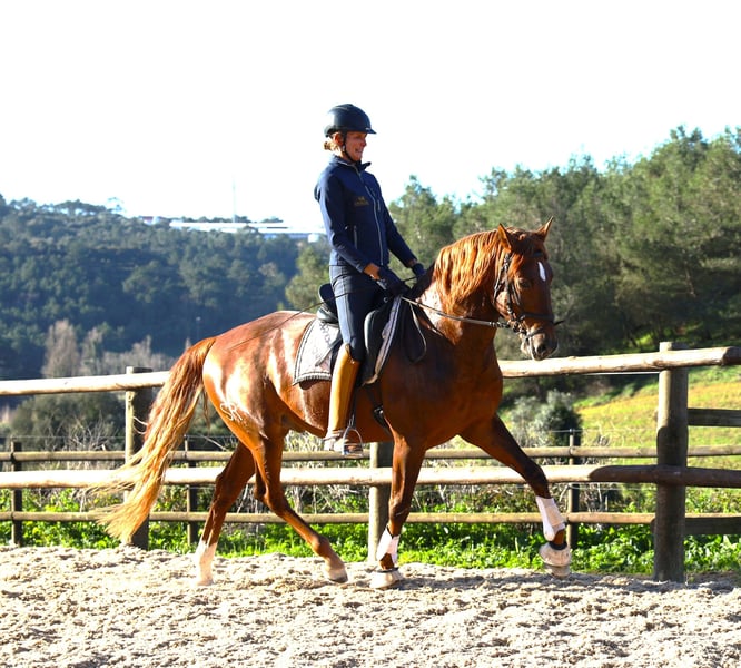 Rubio SR was born, raised, and started here. He is a well-mannered and easygoing horse. Suitable for amateurs. X-rays are available. He is another descendant of Imperador de Cabeçao, a Grand Prix stallion.