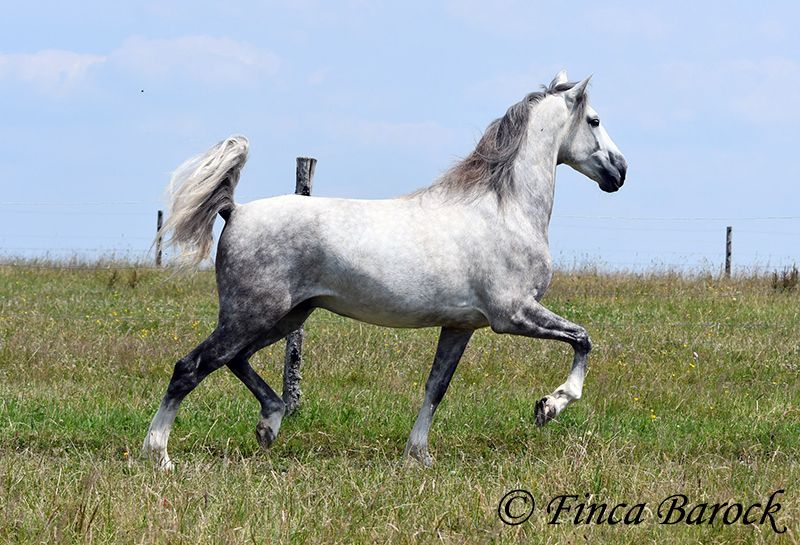 Race : PSL Name : Quartzo LF Sexe : Étalon Taille : 1,62 m Naissance : 29/05/2020 Couleur : Gris Prix : 14 900 € Père : Atrevido v. Iraque Mère : Doninha II v. Rubi Quartzo, est un Lusitanien typé, doté d’un caractère amical et de mouvements confortables en selle. Il est également extrêmement câlin et proche de l’humain. Outre sa bonne constitution et son bon caractère, il se distingue par sa montabilité et sa volonté d’apprendre. Sa galopade en montée est particulièrement remarquable, on se sent comme sur un nuage en tant que cavalier <3 Lorsqu’il découvre de nouvelles choses, Quartzo reste plutôt hésitant, mais il se laisse facilement convaincre de passer à côté. Il adore l’eau, se faire éclabousser dans les flaques est pour lui un vrai plaisir ! Actuellement, Quartzo apprend à faire des transitions pas-galop sous la selle. Le travail en épaule en dedans et en travers depuis le sol se passe déjà très bien, début de traversale. Également commencé en selle. Nous travaillons actuellement le pas espagnol depuis le sol, et il montre déjà de très belles étapes avec des pas hauts et précis. Dans l’ensemble, nous percevons Quartzo comme un cheval très sûr de lui, attentif et qui apprécie les nouvelles tâches. Et ce galop... <3 Il adore le travail en liberté, tout comme la randonnée. Il est très polyvalent : travail à la main, longues rênes, randonnée en main ou avec un compagnon. Quartzo est sensible et souhaite un cavalier clair dans ses aides. Ce n’est donc pas un cheval pour les cavaliers débutants. Il veut toujours faire plaisir, est extrêmement appliqué et souhaite tout faire parfaitement. Si l’on répète la même leçon trois fois au même endroit, il la maîtrise rapidement. Un vrai plaisir pour le cavalier exigeant qui souhaite un cheval réactif et clair dans ses réponses. Quartzo est habitué à la vie en troupeau et s’entend très bien avec des chevaux très différents. Inclut une inspection vétérinaire clinique et des radiographies. Contact : Finca Barock, Tél. 0173-696 31 81, 56291 Wiebelsheim