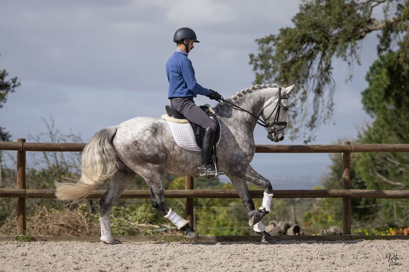 Qing RS (08/2020) 16.1 hh Piro-free RX approved for sport Qing is a talented, light-footed Lusitano gelding (PSL), sired by the Grand Prix stallion Jasmim Plus and out of a dam line including Quadrado MAC (Coimbra). He possesses three above-average gaits: an exceptionally good walk, a light-footed trot with beautiful shoulder freedom and strong hindquarters, and a very balanced canter. Raised in Belgium, well-mannered and properly brought up. A very affectionate and gentle horse. Over the past six months, he has been in professional training in Portugal, where he is being prepared for sale. Training level includes lateral work, counter canter, and beginning flying changes. He is also familiar with groundwork (TRT Method), long lines, and work on the halter. He can be turned out with other horses. Very well-behaved on the lead and well-trained overall. Qing falls into a higher price range (>€25,000) and is available for viewing in Portugal.