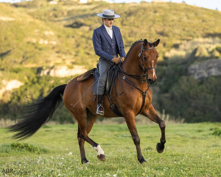 Ogier mieszaniec Lusitano i konia typu Warmblood, wolny od piros.