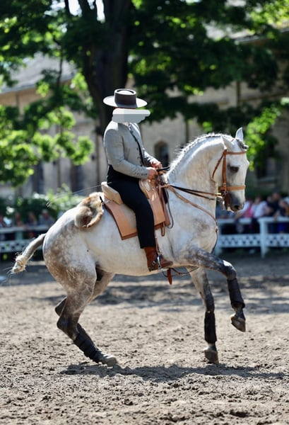 Exceptional gelding Orfeo. 7 years old. The horse has trained, competed in shows and competitions under a Working Equitation World Champion. He has been in Poland for six months and continues regular training. He competed in class CC but is prepared for Master level. The horse is very safe, not afraid of anything on the obstacle course or out on trails, where he goes once a week. Orfeo is an active horse, very attentive to the rider. Of course, he is not a horse for amateurs due to his level of training. Price and videos available on WhatsApp: +48574014045.