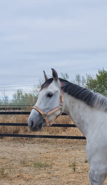 **Lusitano castrado, entrenado en doma Caballo Lusitano, castrado, nacido en 2018, con facilidad para aprender nuevos ejercicios y mucha energia. Con una alzada de aproximadamente 165 cm, este tordo rodado no pasa desapercibido en pista. Este ejemplar ha sido entrenado en doma clásica, demostrando una actitud asustadiza pero inteligente, por lo que no es apto para jinetes sin experiencia en el deporte. Su temperamento en box/prado es equilibrado y confiable. Salud apta para el deporte, consultar para mas información