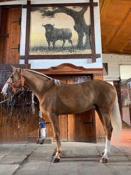 En venta ‼️ Eros ✨ Caballo palomino para doma y salto✨ Una excelente opción para disfrutar con todo tipo de jinetes. 🔝 Con una excelente base en doma clásica, ahora también haciendo salto. 🤯 🚀 Recorridos a 0,90m en casa con posibilidades de aumentar progresivamente la altura. 🐎 Muy confiable en pista y en exterior, habituada a niños y al transporte. 📌 Edad: 9 años 📌 Altura: 1,63 m 📌 Studbook: Lusitano 📌 Nivel actual: Doma con buen nivel, Saltando 0,90m en casa. 📩 Escríbenos para conocer más detalles o solicitar más información. Whatsapp: (0034) 679 893 760