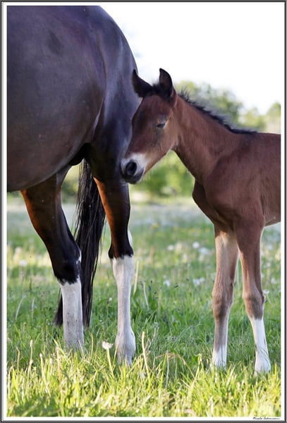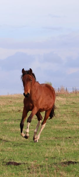 Agasche bvom Hartungshof , geb.am: 07.05.2024 ist eine besonders liebe, nette und unkomplizierte junge Dame, sie verfügt sehr elastische Bewegungen und eine für ein Gangpferd sehr gut gesprungene Galoppade. Ihre Gangveranlagung ist sowohl die Marcha Batida, wie auch die Marcha Picada. Agasche hat wie alle unsere Fohlen das Fohlen ABC gelernt und zeigt sich neugierig und interessiert an allem, was rundum passiert. Genetisch ist Agasche ein Braunschecke, hat aber lediglich 4 weiße Beine und einen schwarz / weiß "karierten" Schweif. Z.Zt. ist sie eine typische 1,5 Jährige bei der so einiges noch nicht so recht zusammen passt, ich bin mir aber sicher, dass sie sich zu einer harmonischen Stute weiter entwickeln wird. Sie lebt mit ca. 20 anderen Pferden zwischen 6 Monate und 29 Jahre alt in einer gemischten Gruppe, wo das Jungvolk spielt und die Erwachsenen wertvolle Erziehungsarbeit leisten. Alle unsere Pferde bekommen alle 7 Wochen Hufkorrektur, werden regelmäßig entwurmt und sind gegen Tetanus, Influenza und Herpes geimpft. Auch von ihr gibt es nicht so viele Bilder, weil ich 2024 und 2025 gesundheitlich heftig angeschlagen war.